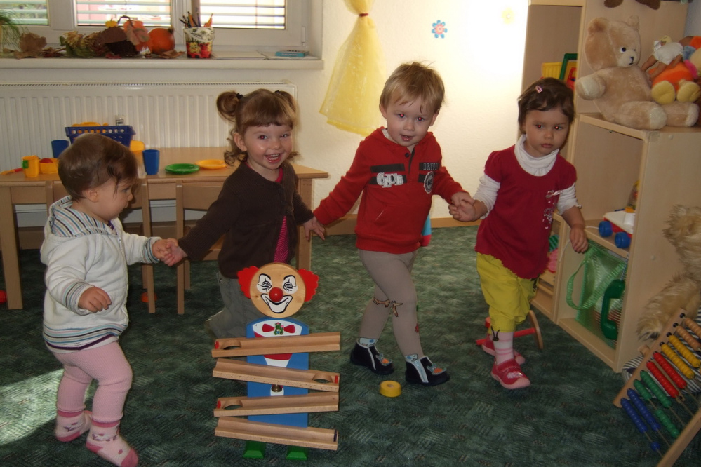 So haben wir in der näheren Umgebung viele wichtige Dinge zu unternehmen: Ent'chen füttern am Karl-Heine-Kanal, Piepmätze schauen in der Gartenanlage "Neu-Lindenau" oder auch die Erkundung der verschiedensten Spielgeräte auf den vielen kleinen Spielplätzen des Duncker-Viertels. Mit unserem Krippenwagen können wir auch den ZOO und das "Kugelino" unsicher machen. Dabei treffen wir uns auch mal mit anderen Kindern und deren Tagesmüttern.